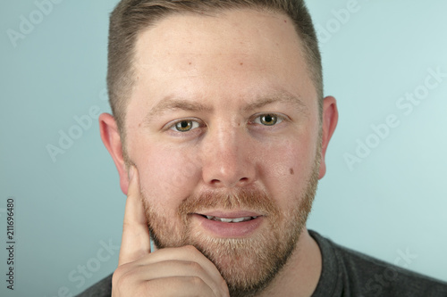 © Birgit Reitz-Hofmann, Obraz premium Bearded casual man looking pensively at the camera