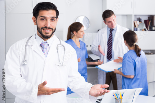 © JackF, Fototapeta premium Bearded doctor inviting in medical office