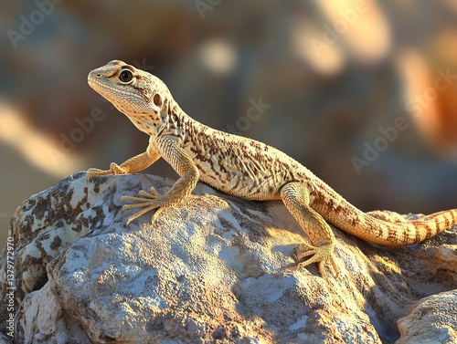 Naklejka premium Bearded Dragon Basking on Rock Enjoying the Warmth of the Sun