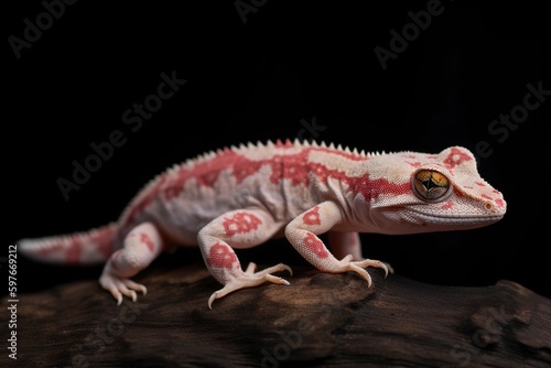 © KKC Studio, Naklejka premium bearded dragon lizard on black.