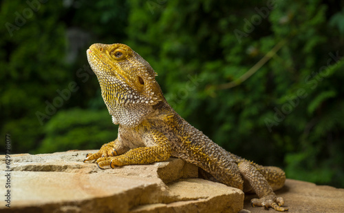 Fototapeta premium bearded dragon lizard on brown stones close-up