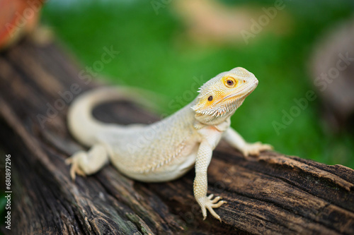 © waranyu, Obraz premium bearded dragon on ground with blur background