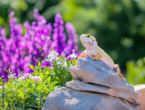 Obraz premium Bearded dragon sitting on a rock. Focus on clear, sharp details and natural...