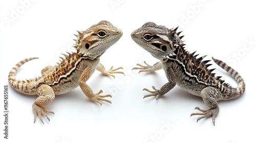 © Kritsadee, Naklejka premium Bearded dragons displaying interaction indoor natural habitat animal photography close-up lizard behavior