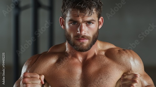 © ZeroOne, Obraz premium Bearded Man Embraces Fitness Journey