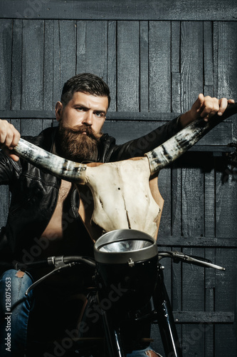 © Volodymyr, Naklejka premium Bearded man hipster biker