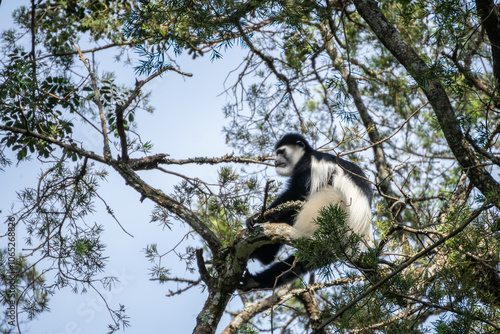 © Leo Viktorov, Fototapeta premium Bearded monkey, Cercopithecus lhoesti, is sitting on a tree branch
