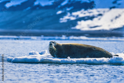 © Lars Johansson, Obraz premium Bearded seal on a ice floe in arctic