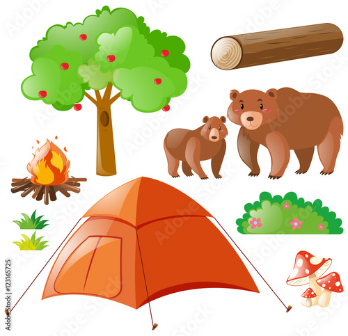 Fototapeta premium Bears and camping elements