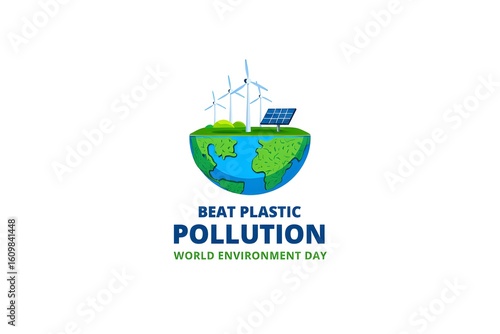 Obraz premium Beat plastic pollution world environment day with renewable energy and earth...