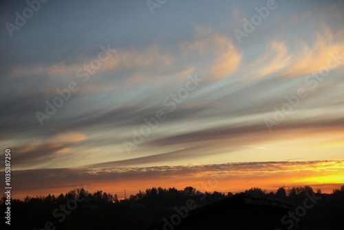 © Ангелина Кеиша, Fototapeta premium beatiful sunset cloud sky gold blue