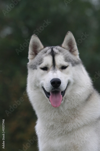 Obraz premium Beau portrait d'un husky sibérien de face tirant la langue
