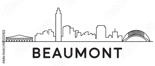 © Nargis, Obraz premium Beaumont Line Art skyline horizontal banner. Beaumont, TX. Vector template for your design. with white background