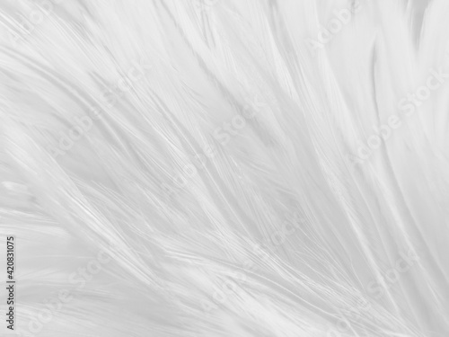 © Weerayuth, Obraz premium Beautiful abstract black feathers on white background and soft white feather texture on white texture pattern, dark theme wallpaper, gray feather background, gray banners