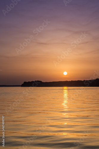 © zlajaphoto, Naklejka premium Beautiful abstract colorful sunset on the Danube river