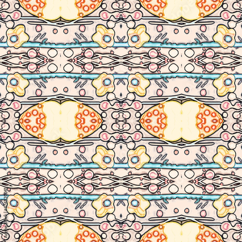 © yang, Fototapeta premium Beautiful abstract geometric floral seamless pattern