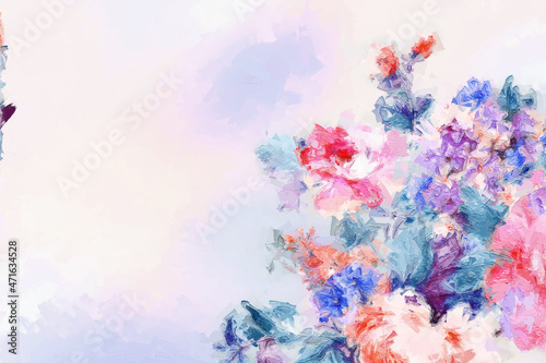 © yang, Fototapeta premium Beautiful abstract oil painting rose flower and bouquet illustration