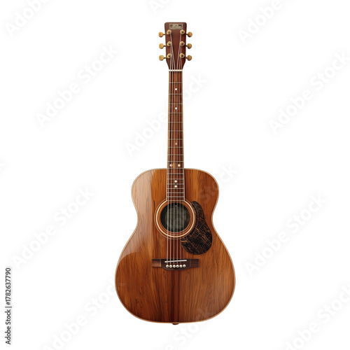Obraz premium Beautiful Acoustic Guitar Displayed on a White Background Highlighting Its...