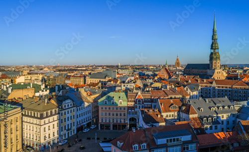 © Ikars Kublins, Fototapeta premium Beautiful aerial panorama view of Riga city skyline, Latvia