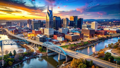 © Kitta Studio, Obraz premium Beautiful Aerial View of Nashville Cityscape During Golden Hour