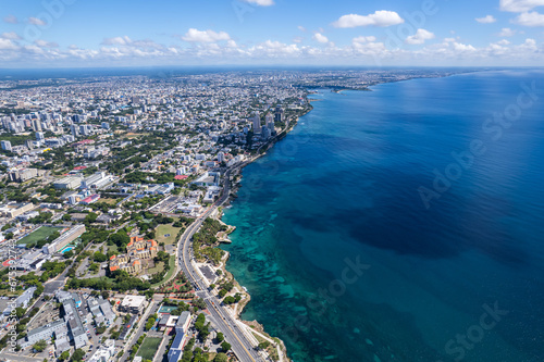 © Gian, Fototapeta premium Beautiful aerial view of the city of Santo Domingo - Dominican Republic with is Parks, buildings, suburbs ,turquoise Caribbean ocean, parks and malecon