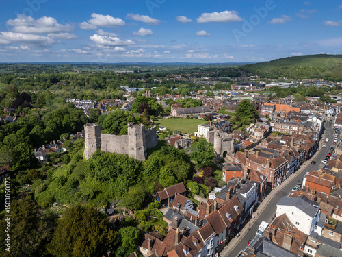 © Cavan, Obraz premium Beautiful aerial view to old historic medieval castle in green hill