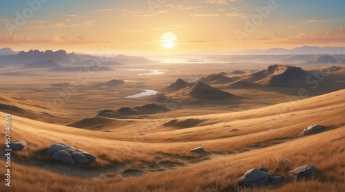 © Karolina, Naklejka premium Beautiful afternoon sky, steppe and plateau