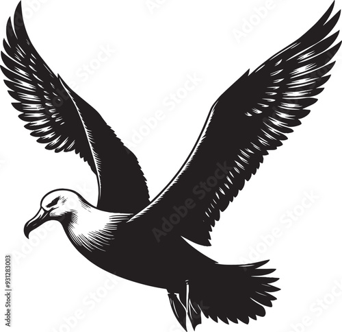 © Md Hasan, Obraz premium Beautiful albatross bird Silhouette isolated on white background Minimalist albatross vector shape