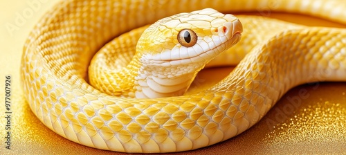 Fototapeta premium Beautiful Albino Snake on Gold Background A Symbol of Fortune and Prosperity for Chinese New Year