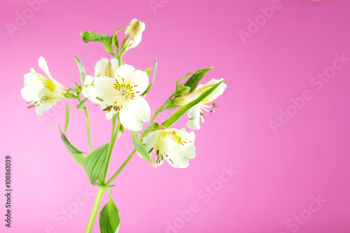 Fototapeta premium Beautiful alstroemeria flowers on a pink background