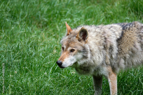 © Jérôme Bouche, Naklejka premium Beautiful and Awesome gray wolf walking on the grass