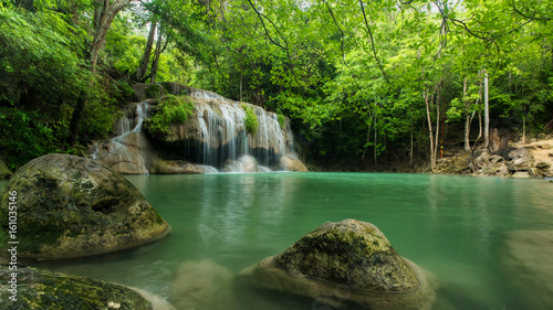 Naklejka premium Beautiful and Breathtaking green waterfall, Erawan's waterfall, Located Kanchanaburi Province, Thailand
