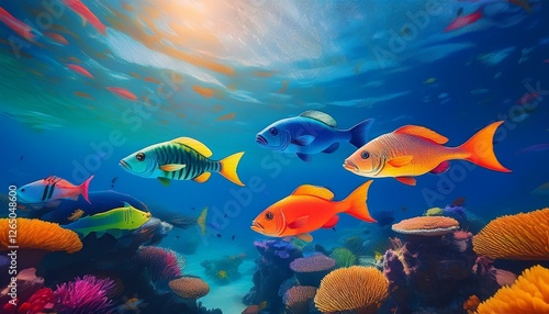 Fototapeta premium beautiful and colorful fishes in the clear ocean