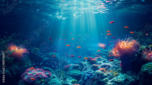 Fototapeta premium Beautiful and colorful tropical fish with coral reef in the deep sea...