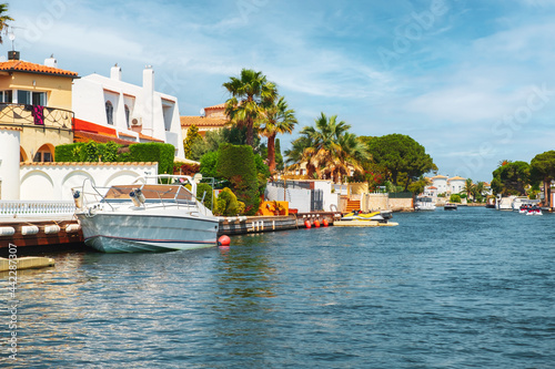 Obraz premium Beautiful and cozy resort town, Empuriabrava town in summer atmosphere, canal...