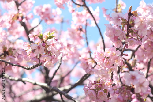 © MeiYi, Obraz premium Beautiful and cute pink cherry blossom (sakura) wallpaper background, soft focus