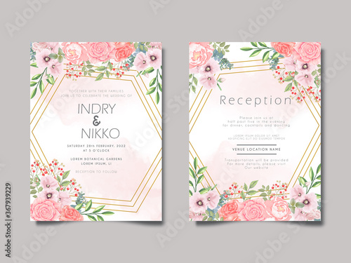 Fototapeta premium beautiful and elegant floral wedding invitation cards