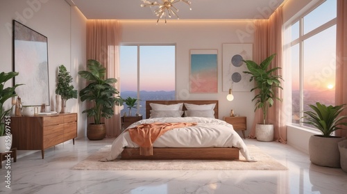Fototapeta premium Beautiful and expensive bedroom in a minimalist