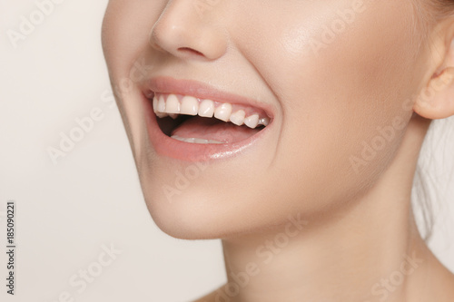 Fototapeta premium Beautiful and healthy woman smile, close-up