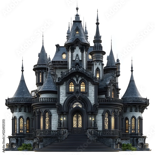 Fototapeta premium Beautiful and magnificent 3D cartoon palace, on a white background,...