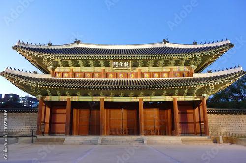 Naklejka premium Beautiful and Old Architecture in Changdeokgung Palace in Seoul