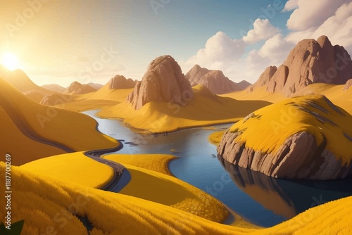 © Imejing, Naklejka premium Beautiful and Peaceful Nature Scenery Illustration Landscape Countryside Tranquil Vibrant and Colorful