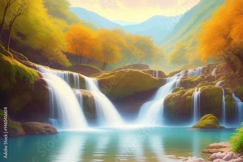 © Imejing, Obraz premium Beautiful and Peaceful Nature Scenery Illustration Landscape Countryside Tranquil Vibrant and Colorful