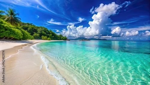 Fototapeta premium Beautiful and sunny beach with crystal clear water and white sand, beach,...