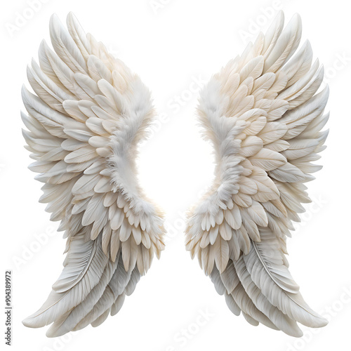 © isarslantas, Obraz premium Beautiful and white angel wings on a white background.