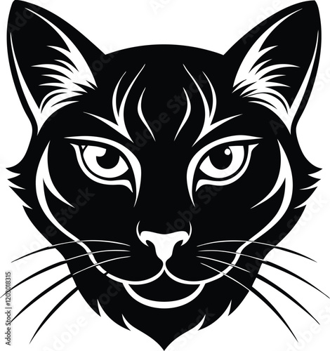 Obraz premium Beautiful animal cat head vector silhouette black color artwork illustration