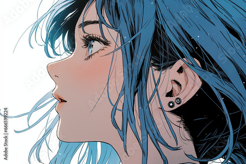 Fototapeta premium beautiful anime girl with blue hair looks up