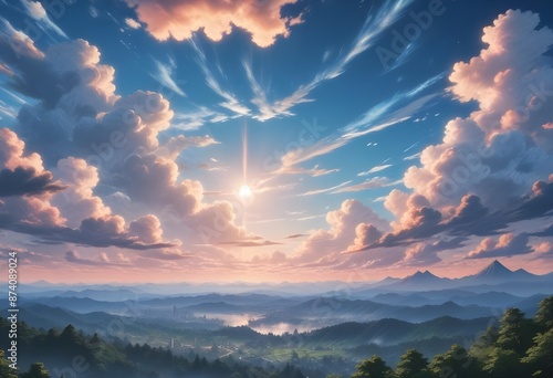 Fototapeta premium beautiful anime sky sunset over the mountains landscape illustration