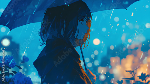 © Adja Atmaja, Obraz premium beautiful anime woman carrying an umbrella