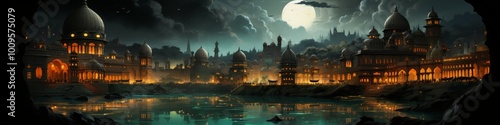 © Genius Visuals, Fototapeta premium Beautiful Arabian Style Ancient City Palace Golden Created with Generative AI Technology